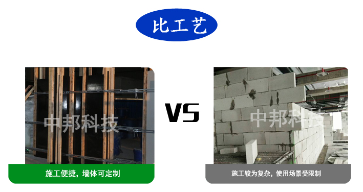 輕質墻體施工約為8道工序,施工較為便捷;且墻體形狀取決于模板造型,可根據不同施工場景來進行定制化施工,塑性較高;